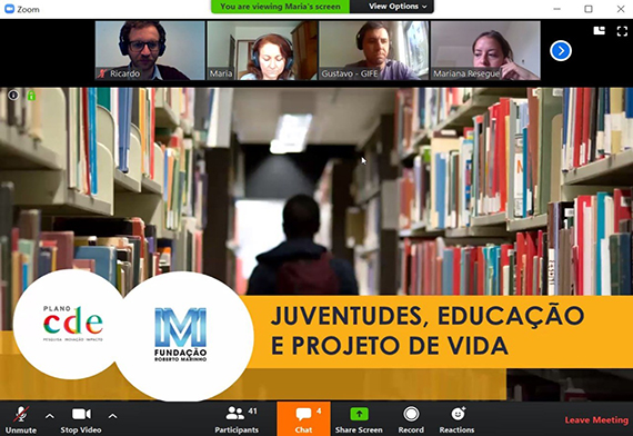 No 2º encontro da RT Juventudes no último dia 28/4, foi apresentada a Pesquisa da Fundação Roberto Marinho com o Plano CDE sobre Juventudes, Educação e Projeto de Vida, que trabalhou a caracterização do perfil dos jovens em relação aos projetos de vida (autoconfiante, resignado, desesperançoso). A apresentação foi seguida do diálogo com Monique Evelle (fundadora do Desabafo Social) e Izabelle Aymé (jovem aprendiz) e os demais participantes.