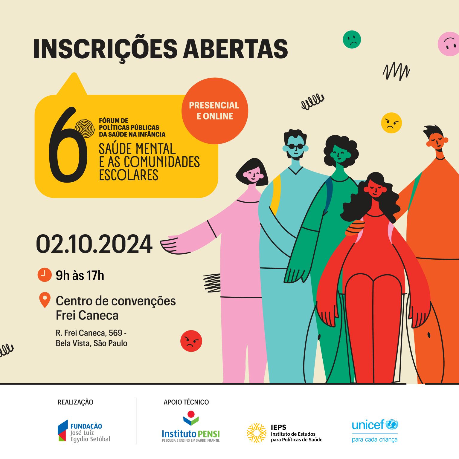 A 6ª Edição do Fórum de Políticas Públicas da Saúde na Infância da Fundação José Luiz Egydio Setúbal acontecerá no dia 2 de outubro de 2024, no Centro de Convenções Frei Caneca em São Paulo, mas também transmitido ao vivo pelo Youtube, centrando discussões sobre Saúde Mental e as Comunidades Escolares.