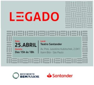 No dia 25 de abril, o Teatro Santander será palco de um evento sobre filantropia e cultura de doação. O evento é uma parceria do Banco Santander com o Movimento Bem Maior e contará com a presença do chairman do Banco, Sérgio Rial, do novo presidente executivo do Santander, Mario Leão e do fundador do […]