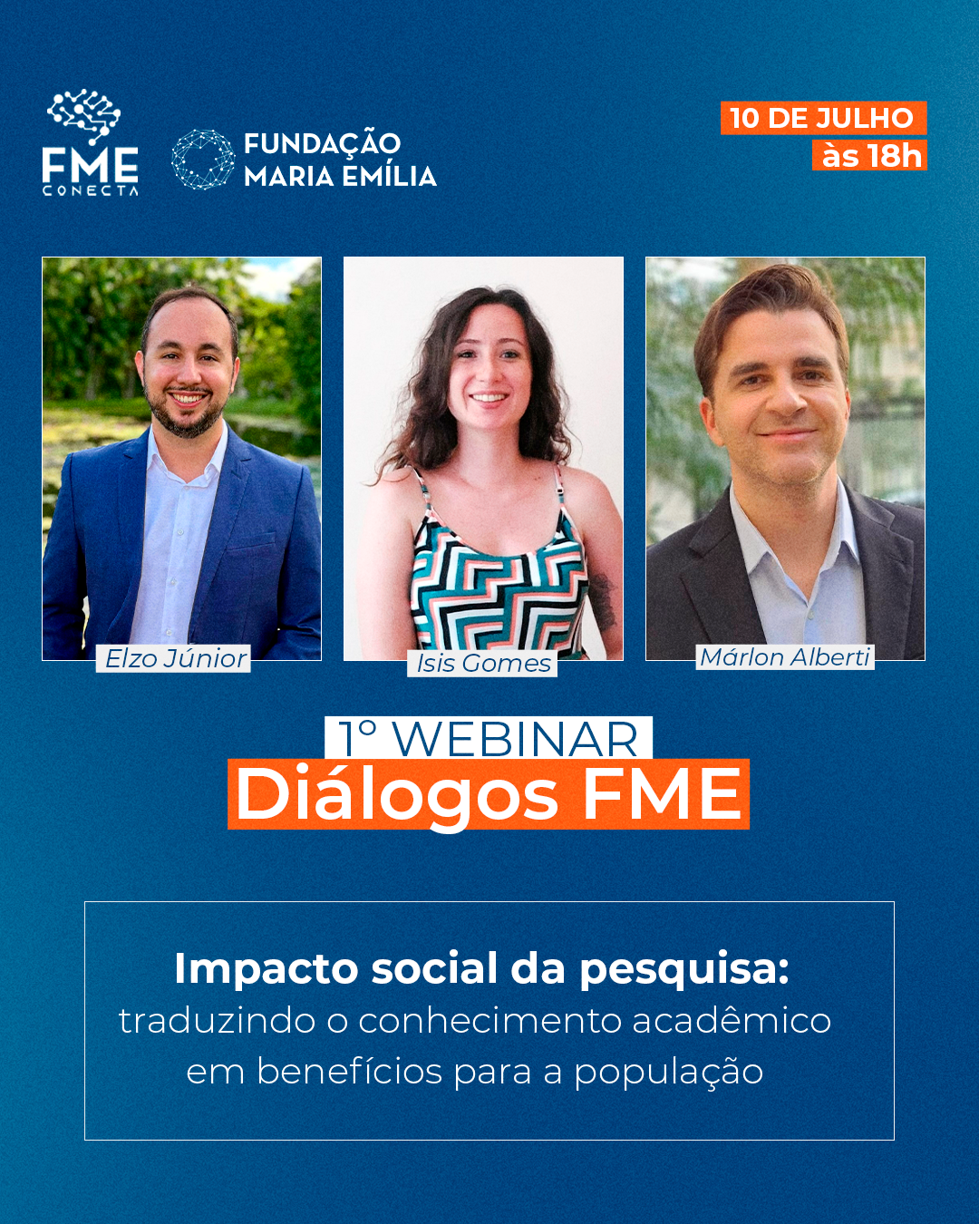 No dia 10 de julho, realizamos o primeiro encontro da série Diálogos FME, uma noite especial, cheia de trocas sobre como transformar conhecimento acadêmico em benefício concreto para a população.