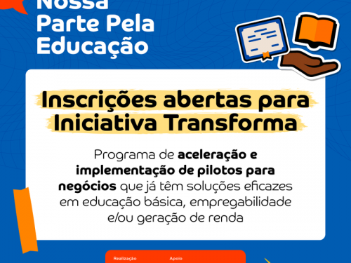 O Instituto BRF, em parceria com o Quintessa, está inscrições abertas para o edital do Programa Nossa Parte pela Educação, na iniciativa Transforma, para trabalhar com negócios de impacto que atuam com educação básica, empregabilidade e geração de renda.