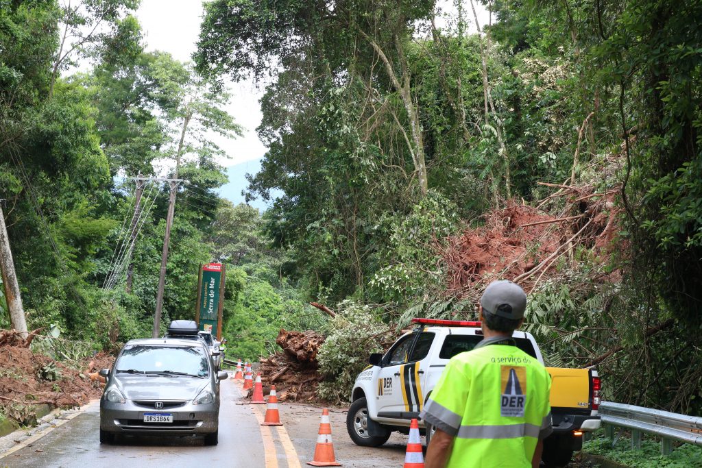 São Sebastião (SP), 22/02/2023, Trecho de interdição parcial na rodovia SP-55 Rio-Santos entre o centro de São Sebastião e o bairro Barra do Sahy.