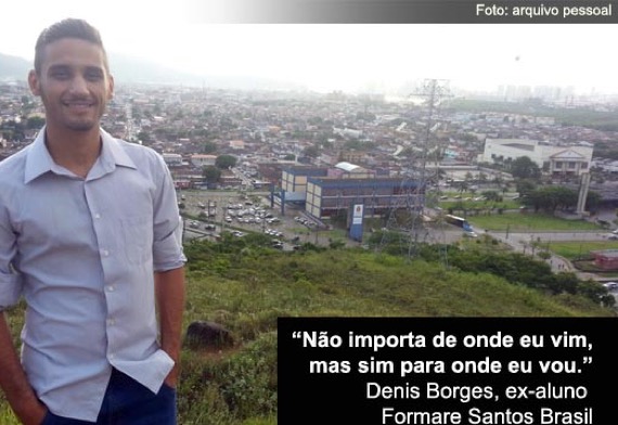 Em 2009 Denis Borges participou do programa Formare Santos Brasil e foi o primeiro ex-aluno a ser contratado pela empresa, onde atuou também como educador voluntário. Criado pelos avós maternos, o jovem curioso sempre correu atrás do que acreditava. Hoje, aos 24 anos, continua arriscando para alcançar o sucesso e prepara-se para concorrer a uma vaga na Singularity University, localizada no Vale do Silício, na Califórnia (EUA), para estudar e criar soluções para os problemas do mundo. Saiba um pouco mais sobre ele na entrevista abaixo.