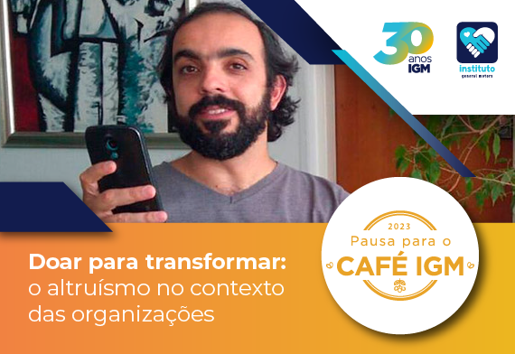 O Instituto General Motors (IGM) realizou, na sexta-feira (24), a 8ª edição do Pausa para o Café, com a presença do especialista João Paulo Vergueiro, Diretor do Hub da América Latina e Caribe do GivingTuesday. Durante o encontro virtual gratuito que discute assuntos conectados à Agenda ESG, o convidado apresentou suas percepções acerca do tema “Doar para transformar: o altruísmo no contexto das organizações”, compartilhando reflexões sobre como empresas, institutos e fundações podem atuar no âmbito de campanhas voluntárias de doações.