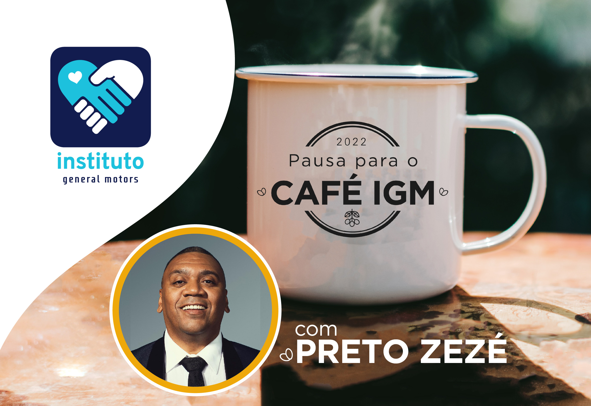 O Instituto General Motors (IGM) recebeu o Presidente da CUFA, Preto Zezé, em mais uma edição do “Pausa para o Café”, evento virtual que difunde o conhecimento sobre práticas ESG. Apresentando suas reflexões sobre empreendedorismo social, tema desta 5ª edição, o convidado discutiu o apoio do setor privado a negócios geradores de impacto positivo oriundos de favelas e periferias, refletindo sobre como as organizações podem ser incentivadoras dessas ações.