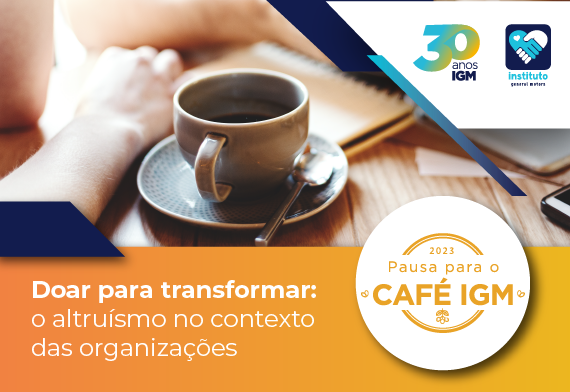 O Instituto General Motors (IGM) promove, na sexta-feira (24), às 15h, a 8ª edição do Pausa para o Café, evento virtual gratuito que debate assuntos relacionados à Agenda ESG. Por meio do tema “Doar para transformar: o altruísmo no contexto das organizações”, o encontro discutirá oportunidades e diferentes frentes em que empresas, institutos e fundações podem atuar no âmbito de campanhas e mobilizações voluntárias de doações. O especialista João Paulo Vergueiro, Diretor do Hub América Latina e Caribe do GivingTuesday, será o responsável por apresentar as reflexões sobre o assunto em formato de palestra.