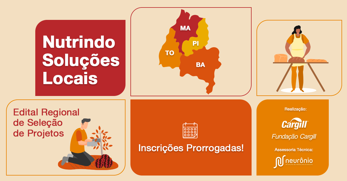 O Nutrindo Soluções Locais – Edital Regional de Seleção de Projetos na área de alimentação segura, sustentável e acessível da Fundação Cargill e Unidades da Cargill visa identificar, incentivar e apoiar o desenvolvimento de projetos socioambientais que se relacionem com alimentação segura, sustentável e acessível, realizados exclusivamente por Organizações da Sociedade Civil.