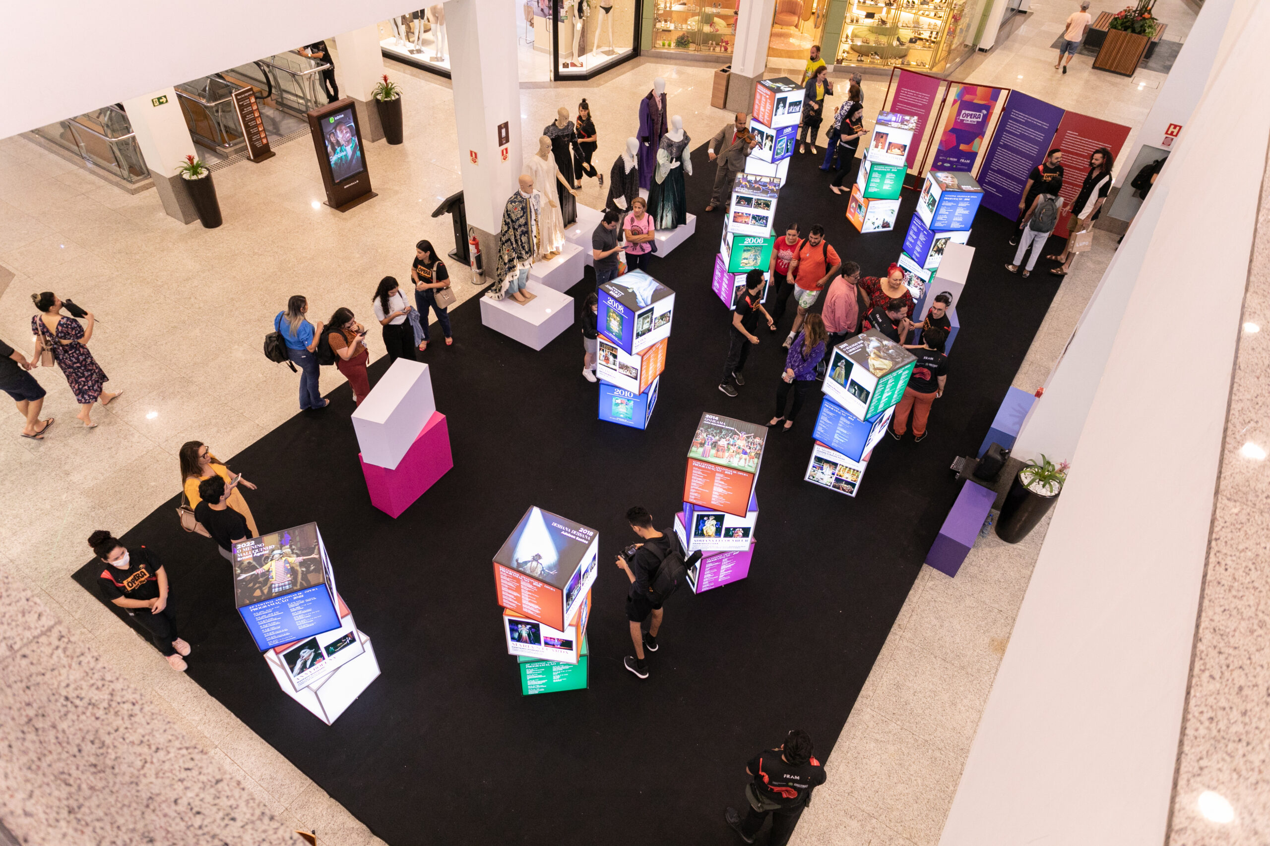 A estudante de recursos humanos, Jessilane, ressaltou o sentimento de “viagem no tempo” ao passear entre os cubos iluminados da exposição. “É muito legal e inovador. Nos possibilita realmente viajar na história dos eventos de ópera”, disse ela.